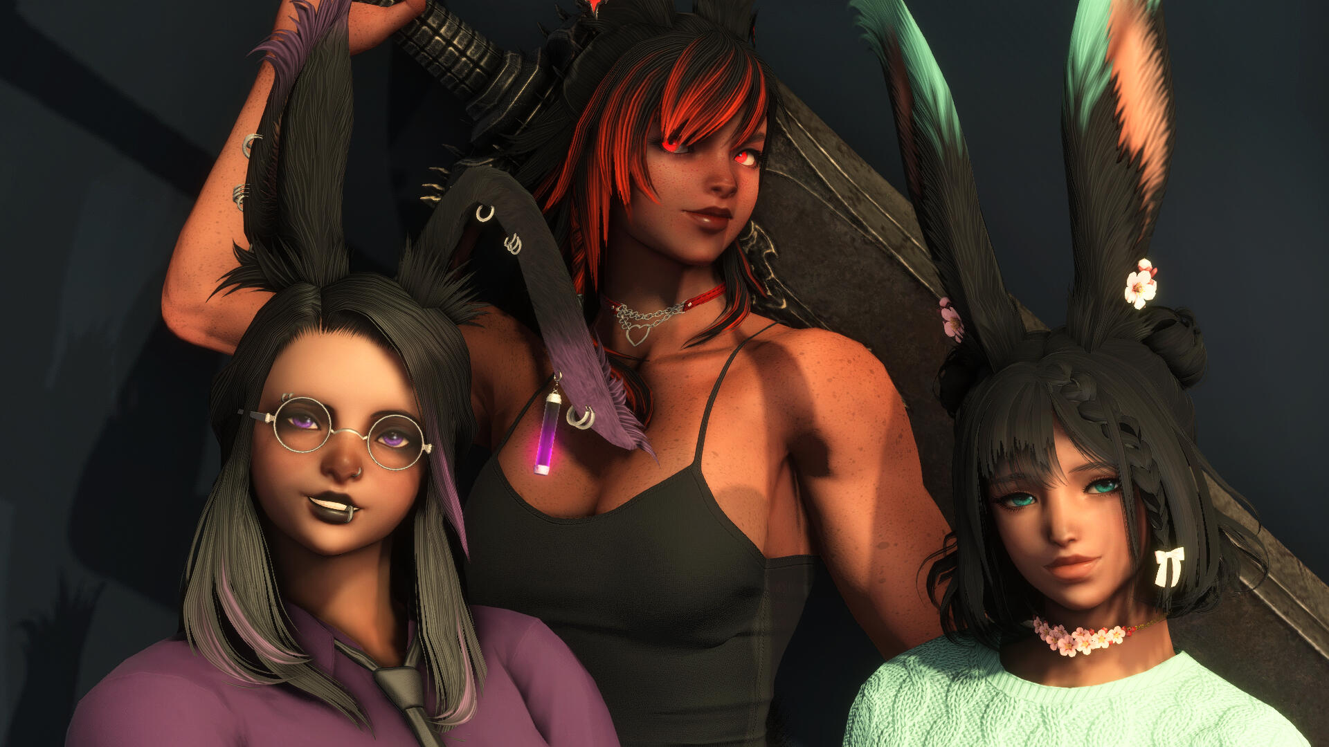 Though perhaps not biologically related, Valoren considers the Caerbannog sisters his family.Elinor (left) is always down to put her clever mind to misuse in being Valoren's co-conspirator.Killhare (center) doesn't always see eye to eye with Valoren, but the two trust each other with their lives.Fjona (right) loves to hear about Valoren's dramatic life and offer insightful advice in turn.